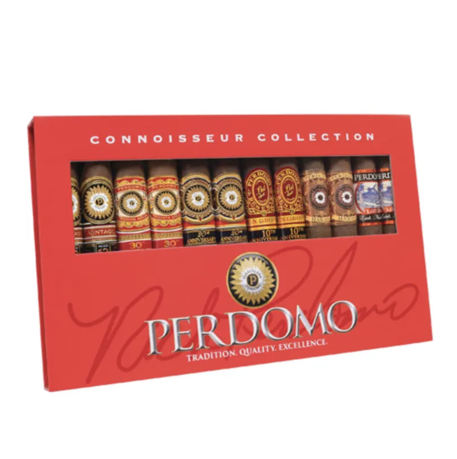 If you’ve enjoyed any Sun Grown cigars from Perdomo, the 12-cigar Perdomo Sun Grown Connoisseur Collection deserves your attention. Taste a wealth of distinction flavor in six different blends finished in a hearty and popular Sun Grown wrapper leaf. Brand founder Nick Perdomo enjoys legions of loyal fans thanks to bestselling cigars like Perdomo 30th Anniversary Sun Grown, 10th Anniversary Sun Grown, 20th Anniversary Sun Grown, Double Aged Vintage Sun Grown, Habano Sun Grown, and Lot 23. Add them all to your collection in one excellent sampler blended to Nick’s award-winning standards for quality, consistency, and taste. Notes of leather, cedar, cayenne, earth, black pepper, almond, and oak come to life in an assortment that’s guaranteed to impress. Discover why cigar lovers settle on Perdomo when flavor and value come first.